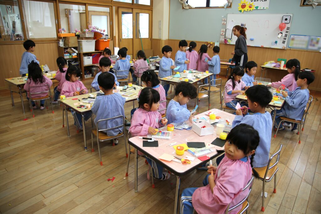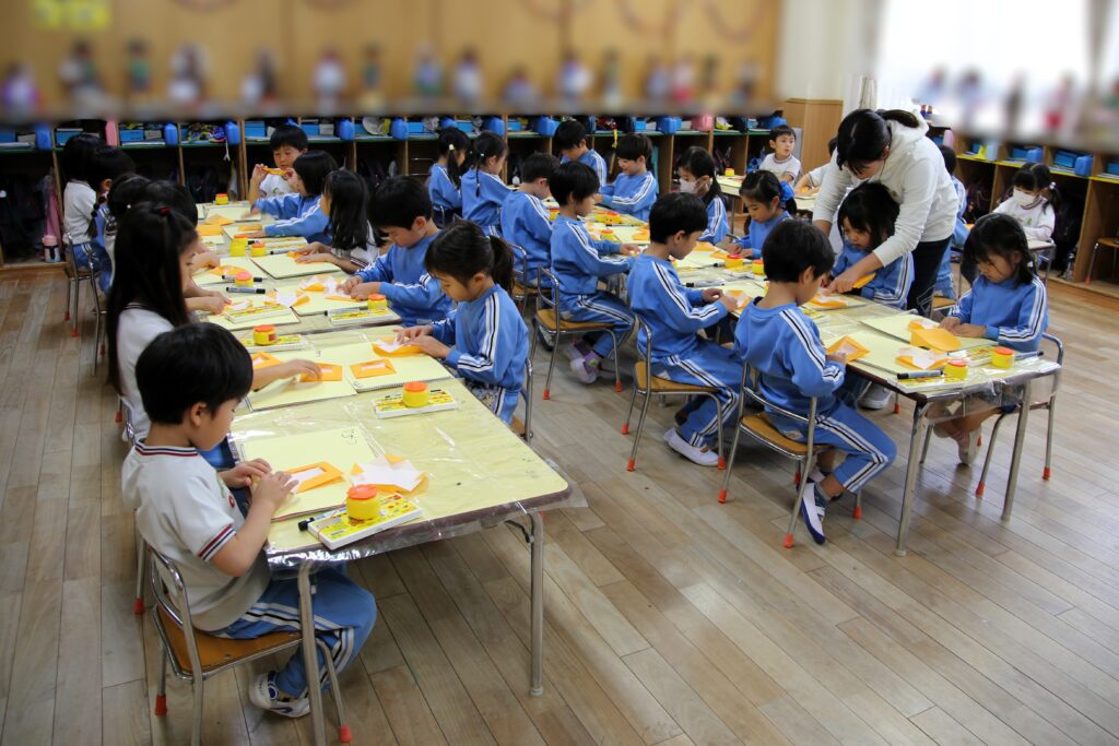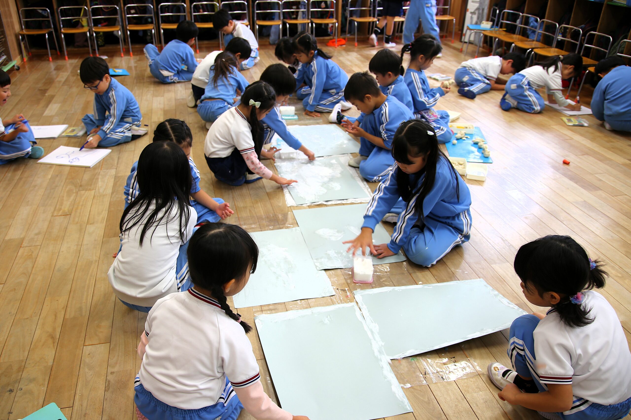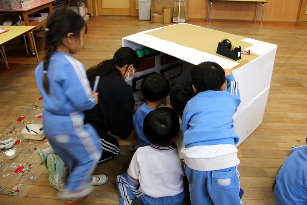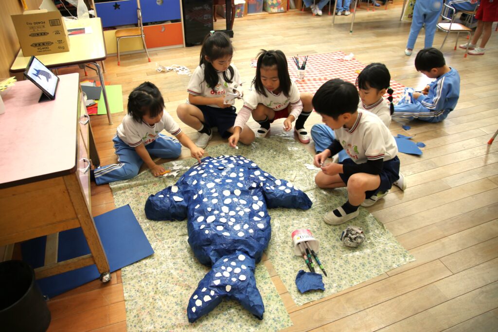 白い水玉模様をどうしたら大量に作れるのか、自分たちで考えて切り方を工夫していました。