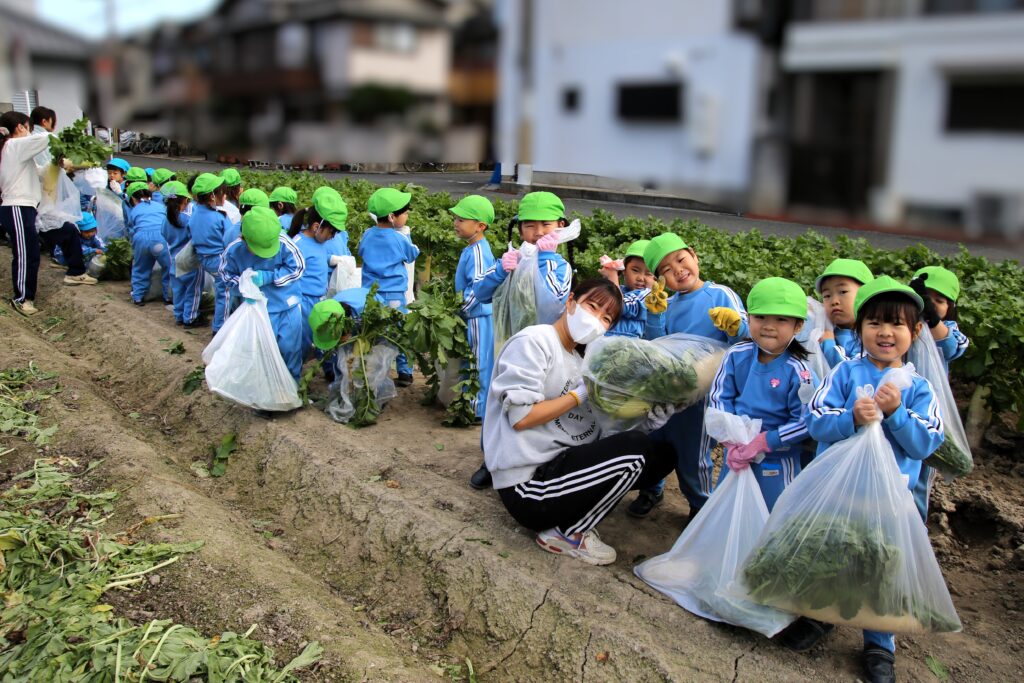 また大根が生えてくるように葉っぱを埋めているお友だちがいてかわいかったです。