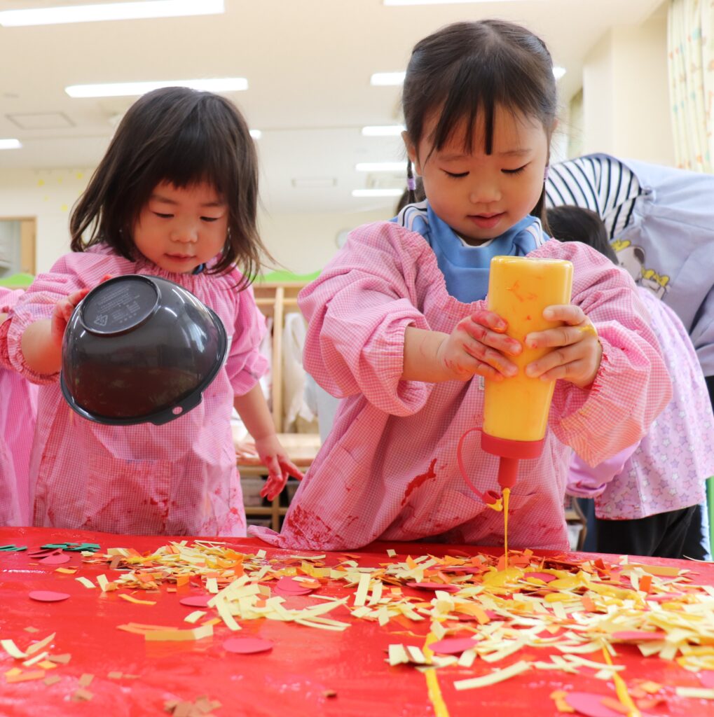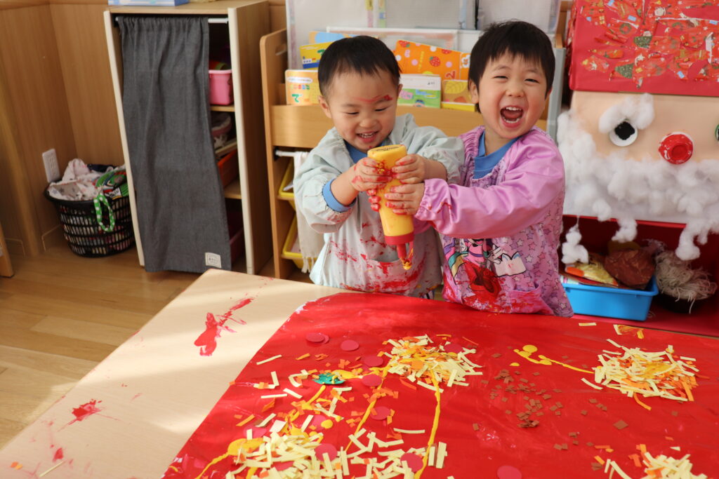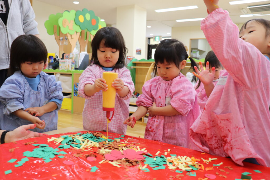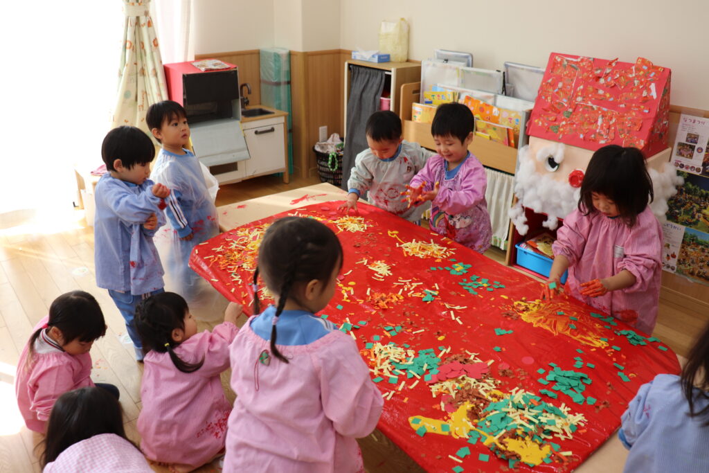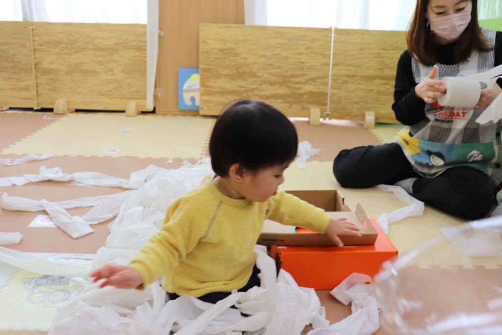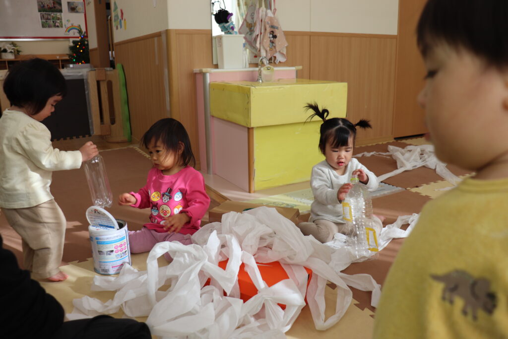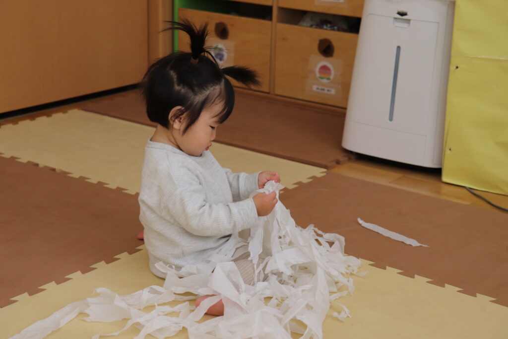 そんな中、ひよこ組さんは、トイレットペーパーを使って、