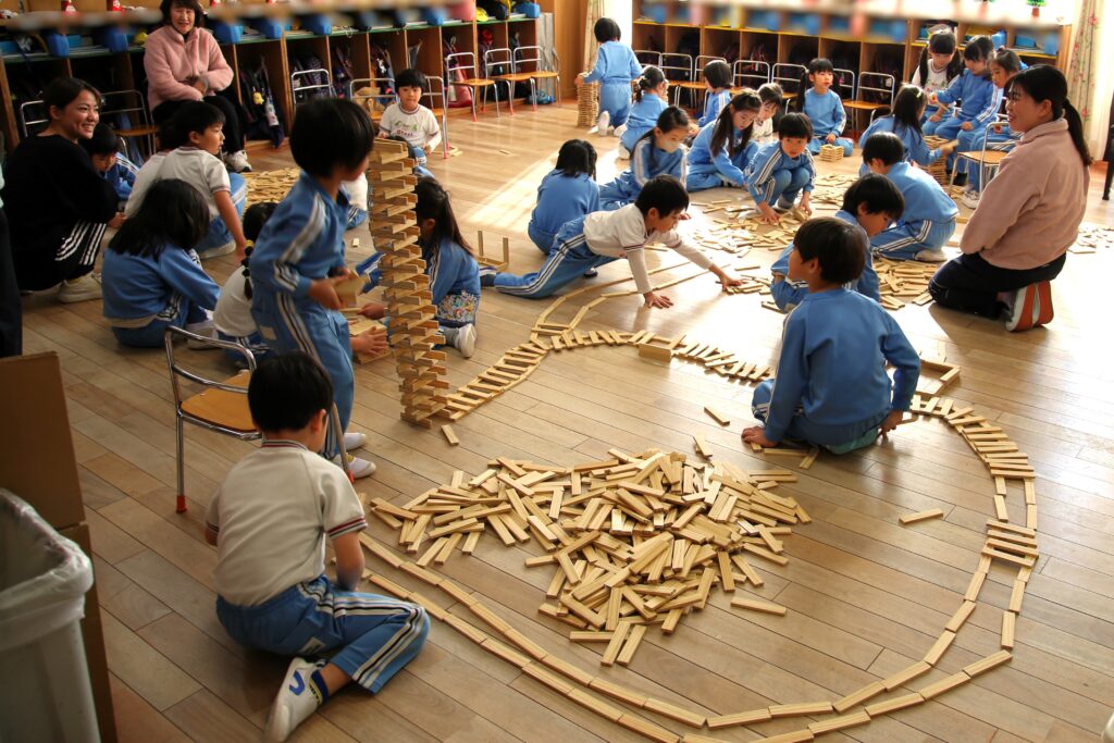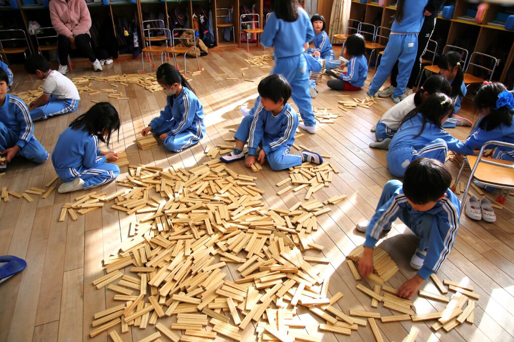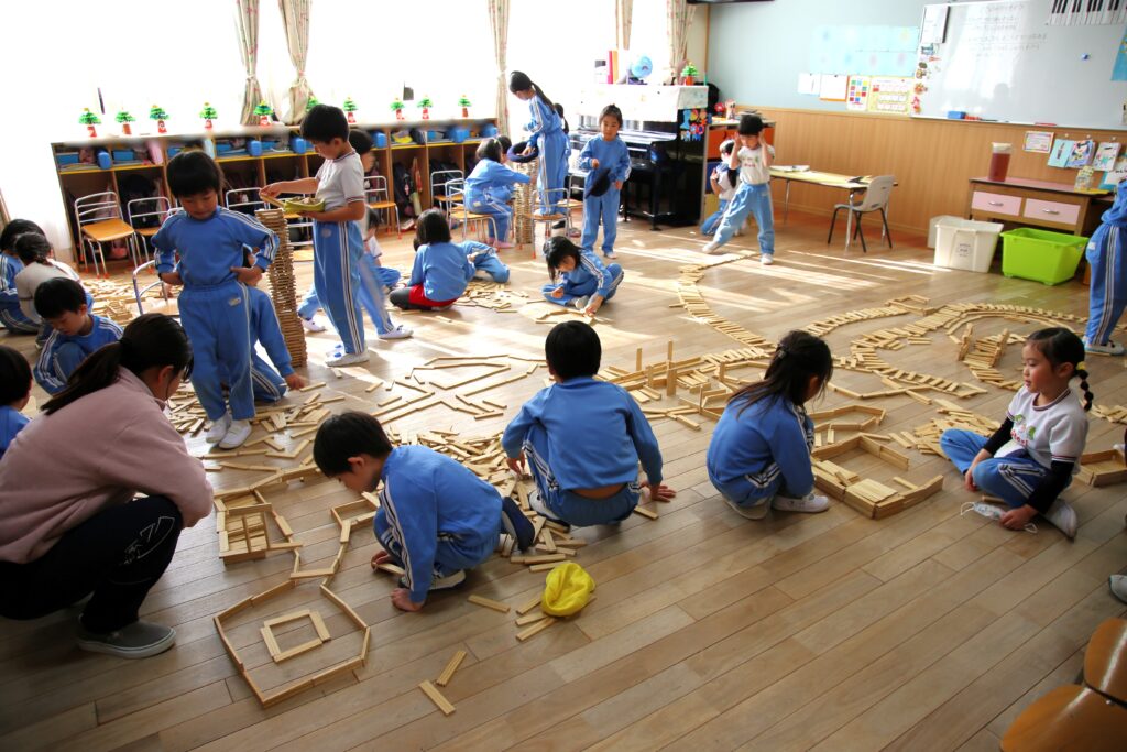 1人で作ったりグループで作ったり、自由に好きな形を作りました。