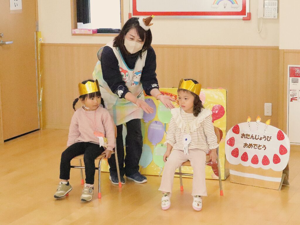 今日は楽しいクリスマス会、サンタさんにプレゼントをもらったりケーキを食べたりして楽しく過ごしました。