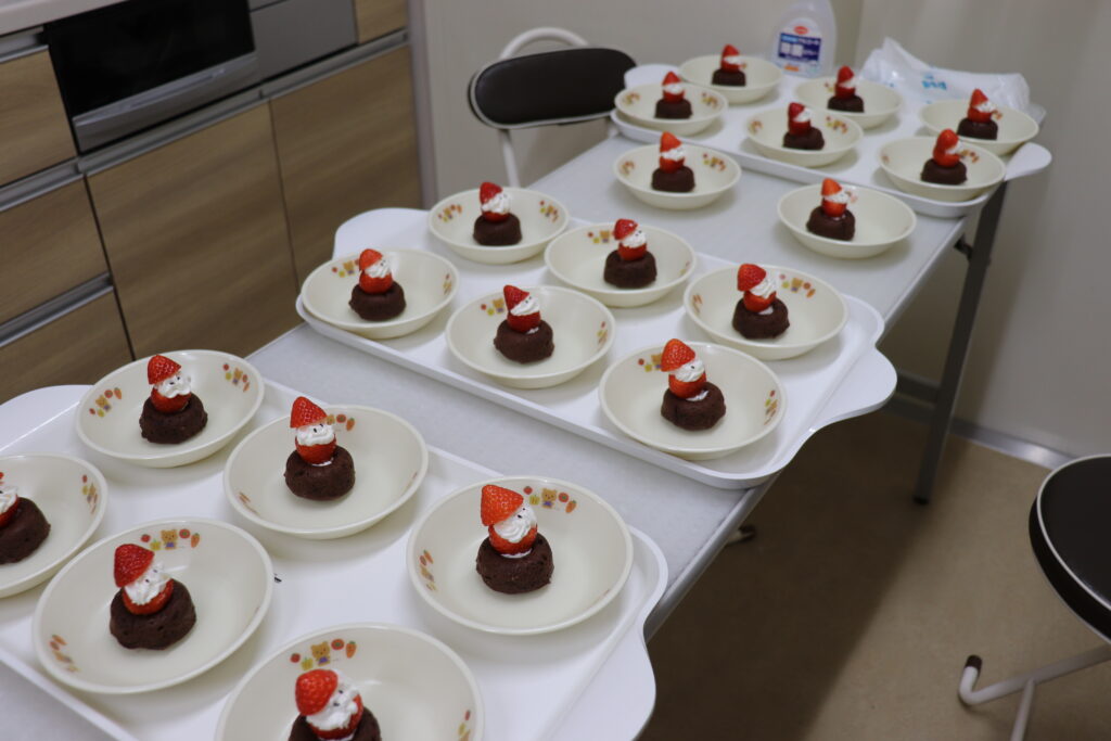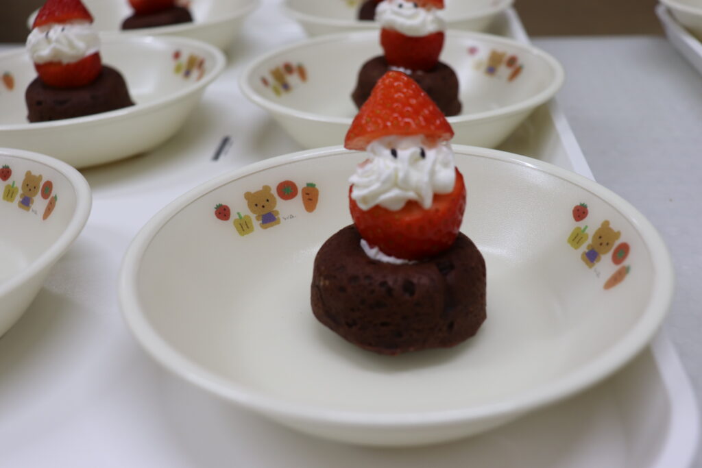 給食の先生からは、サンタさんが飾られた「ドーナツ」を準備していただきました♫