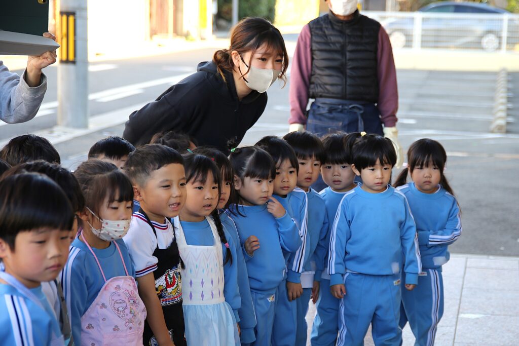 おもちつきの迫力に最初はびっくりしていた子どもたちでしたが、「がんばれ!がんばれ!」と運転手さんたちに声援を送っていました。