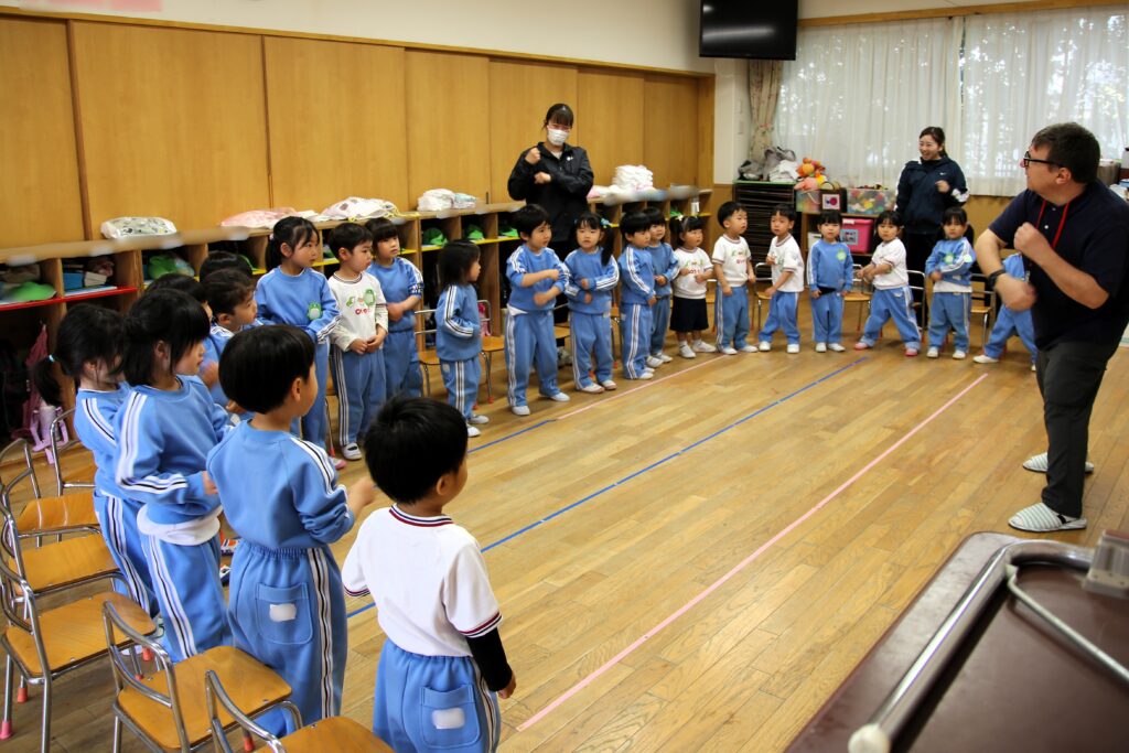 ネイティブの先生と一緒にリトミックで楽しく英語の練習をしました。