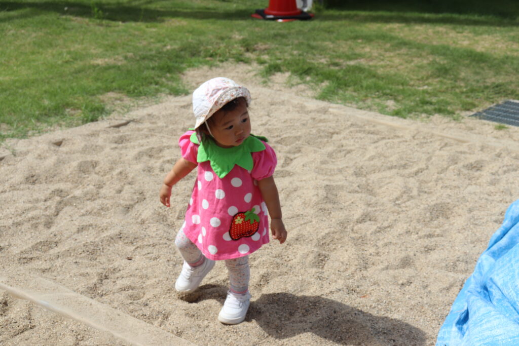 園庭では、お留守番組だったひよこ組さんが、園内探索を楽しんでいました♫
