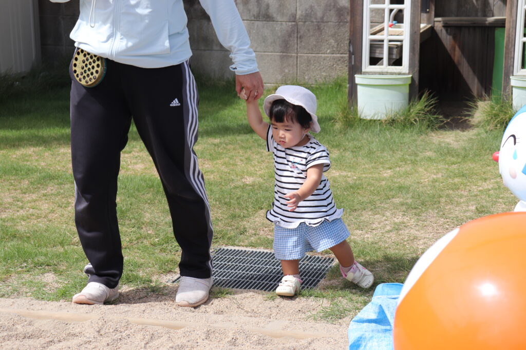 こあら組さんもうさぎ組さんに続けと、少しずつ歩く練習を!