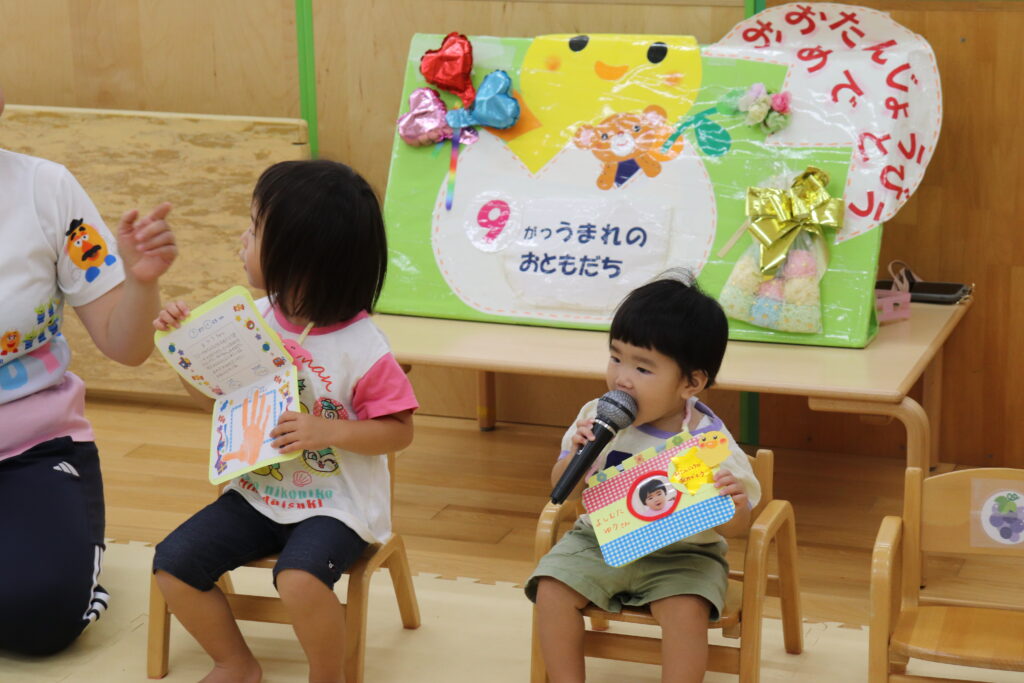今日は、9月生まれのお友だちの「おたんじょうかい」が行われました♫