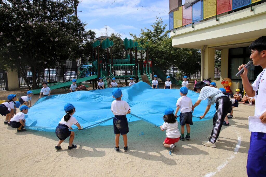 年中組は初めて3クラス一緒にバルーンの練習をしました。