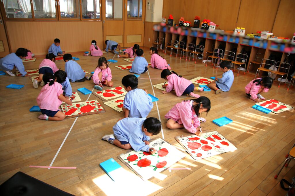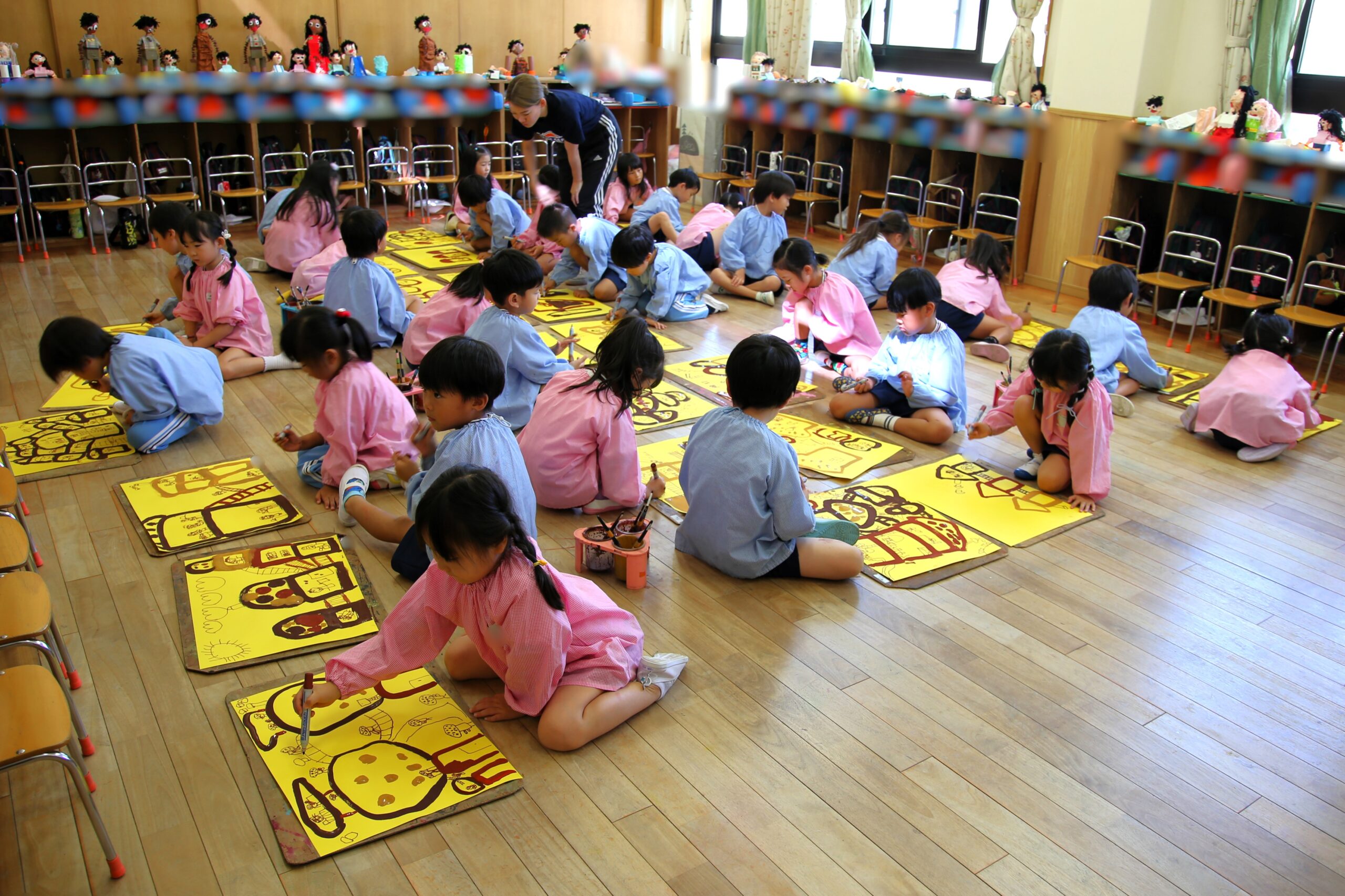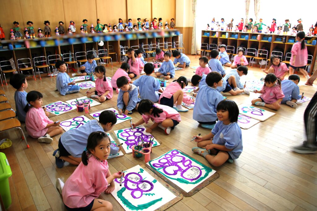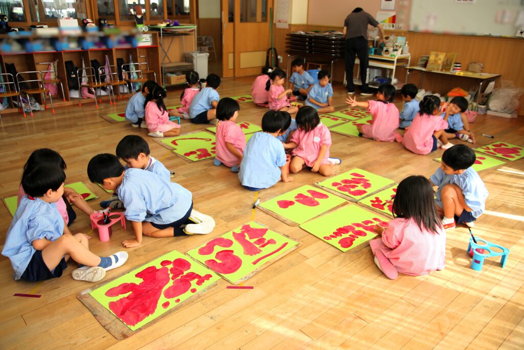 子どもたちが自分で考えた想像の世界を画用紙いっぱいに描いていました。