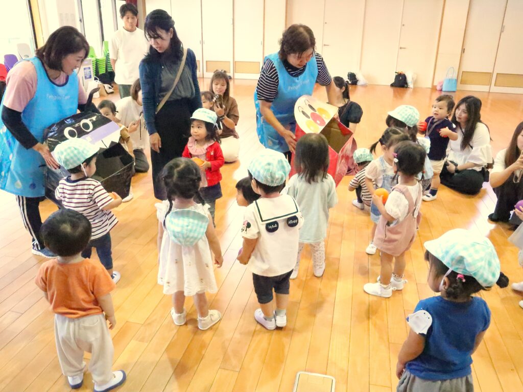 楽しい運動会ごっこ、ボール上手に入れられたかな?