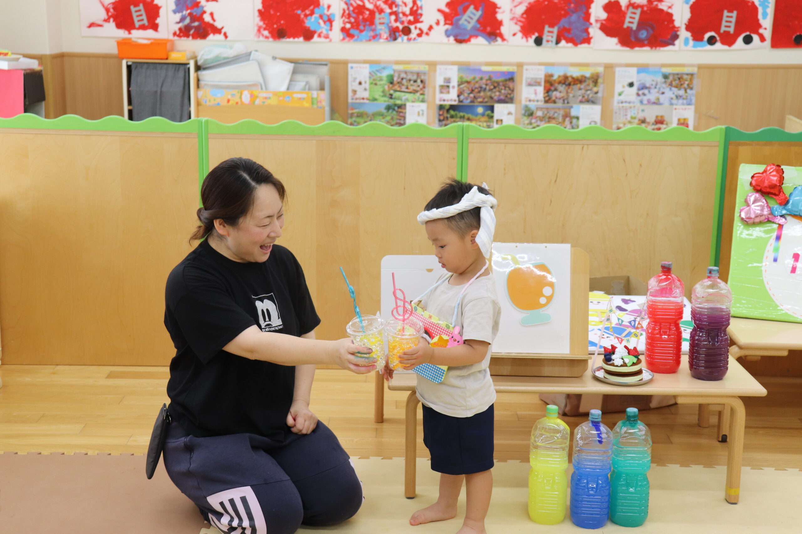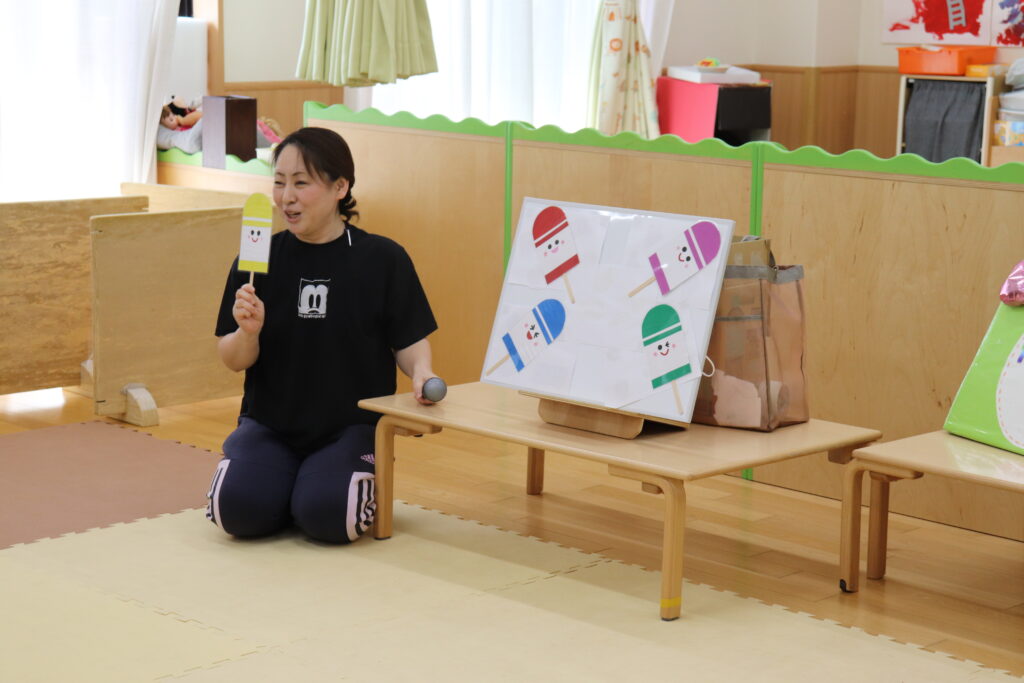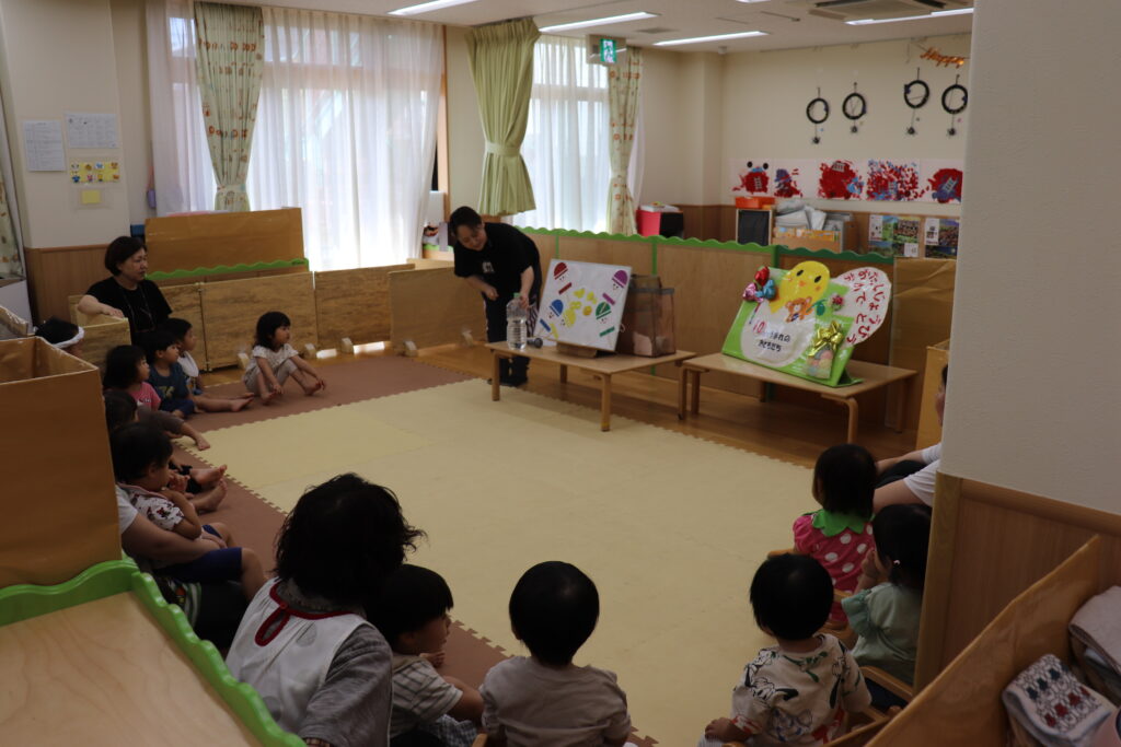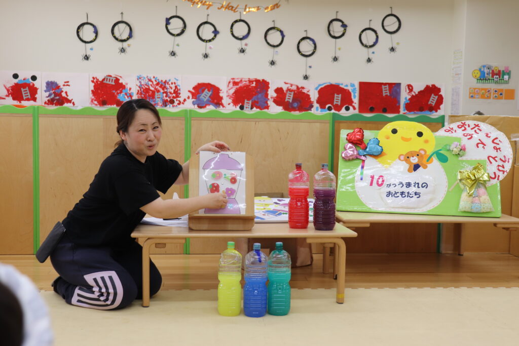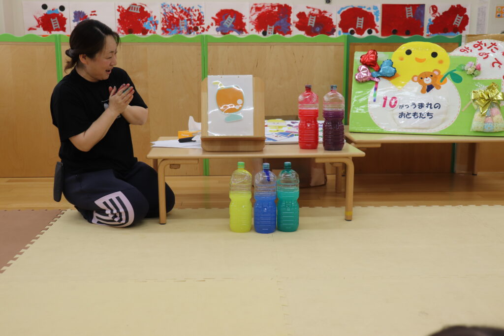 最後は、担当の先生の出し物のひとつの「ミックスジュースの手遊び」を楽しみながら、