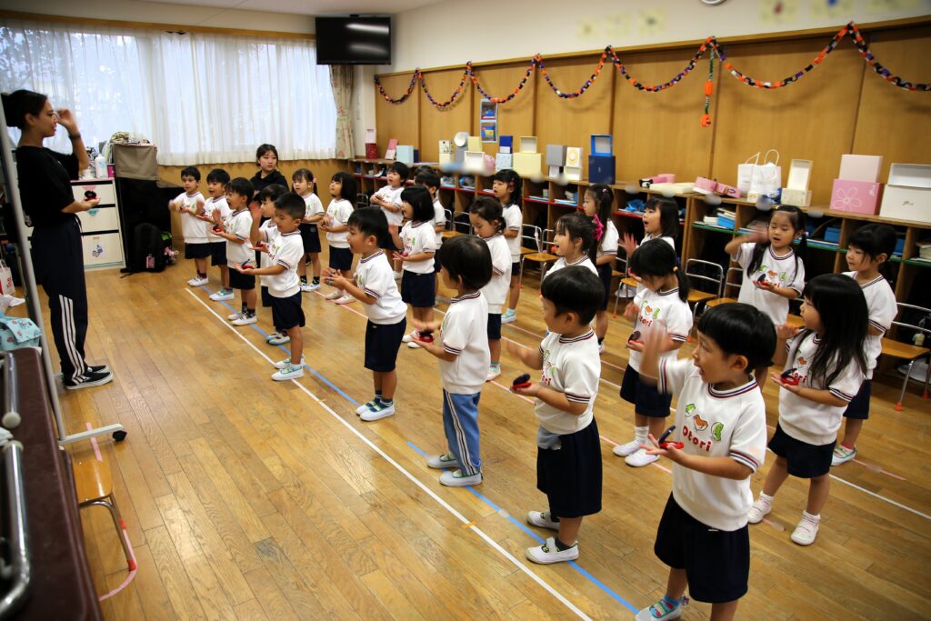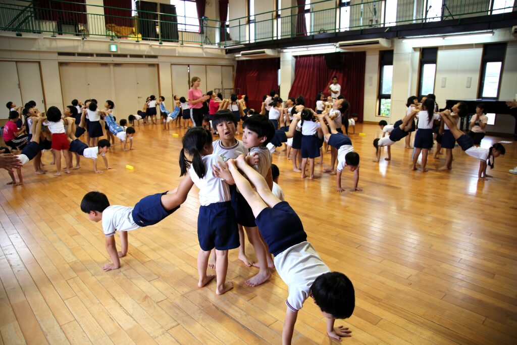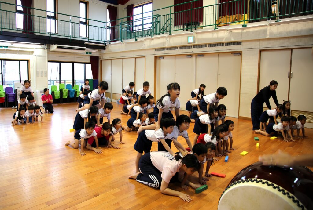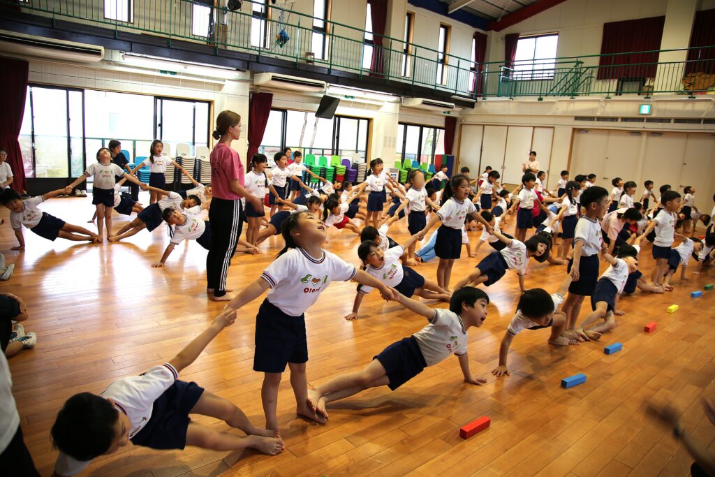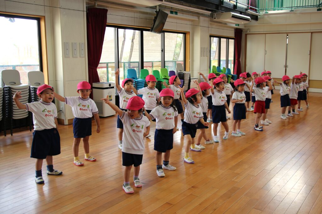 りんご組はリズム運動と体操演技の両方を練習しました。
