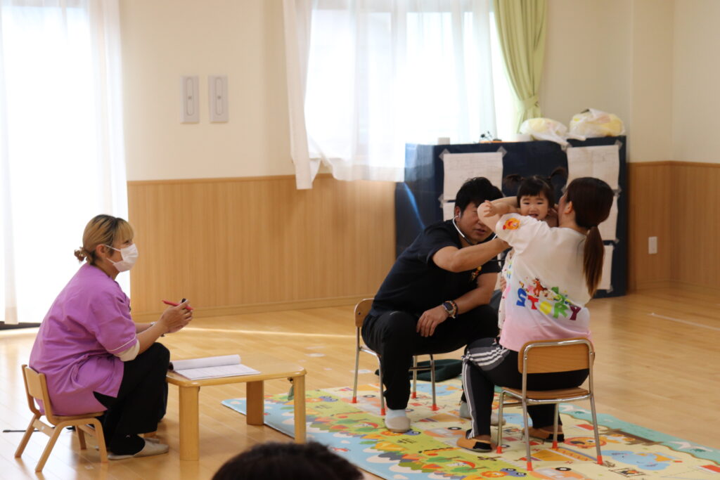 一人でお医者さんの前に立ち、お名前を呼ばれると、小さく手を挙げたり、