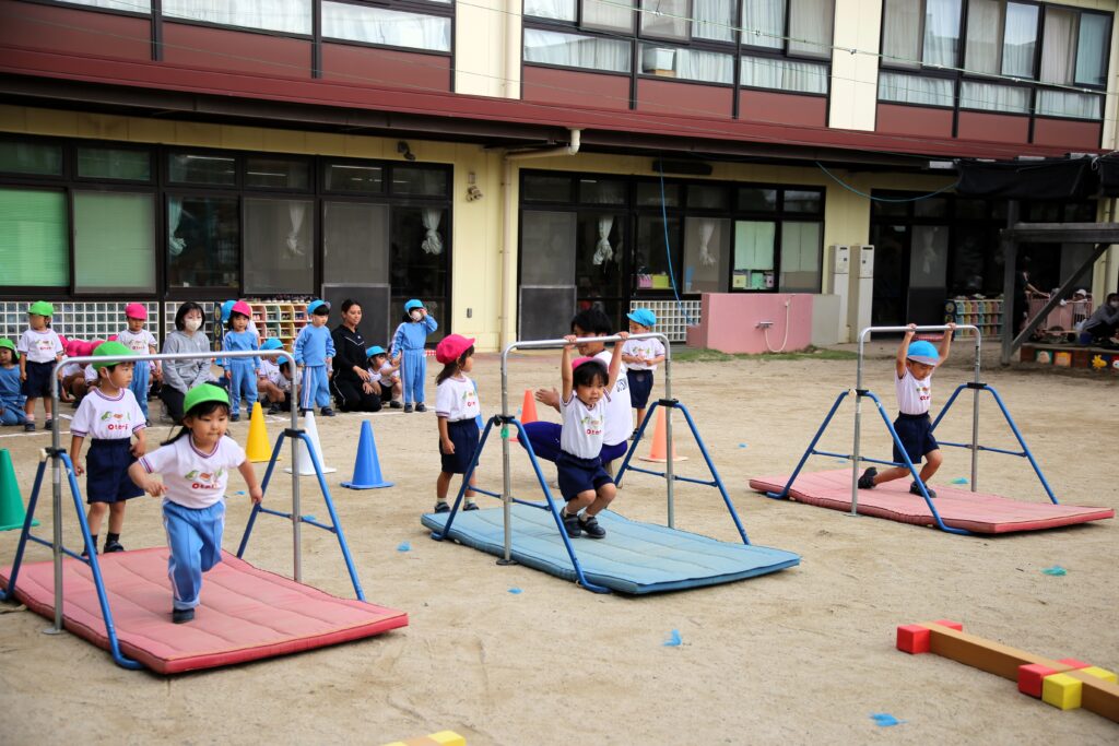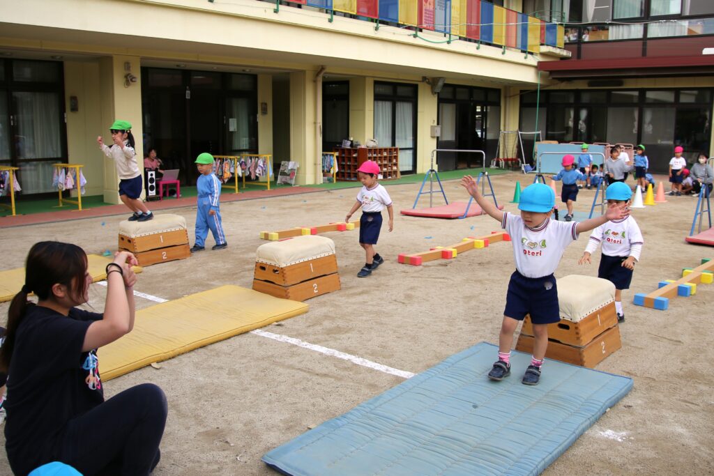 年少組は体操演技の練習をしました。