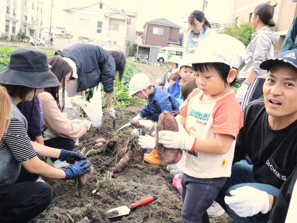 さつまいも堀りに畑へレッツゴー!大きなさつまいもにびっくり!
