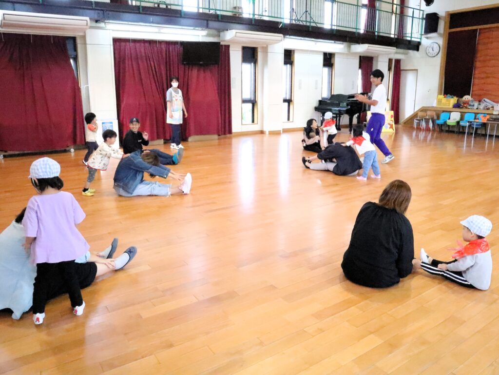 保護者の方と楽しく親子体操をしました。