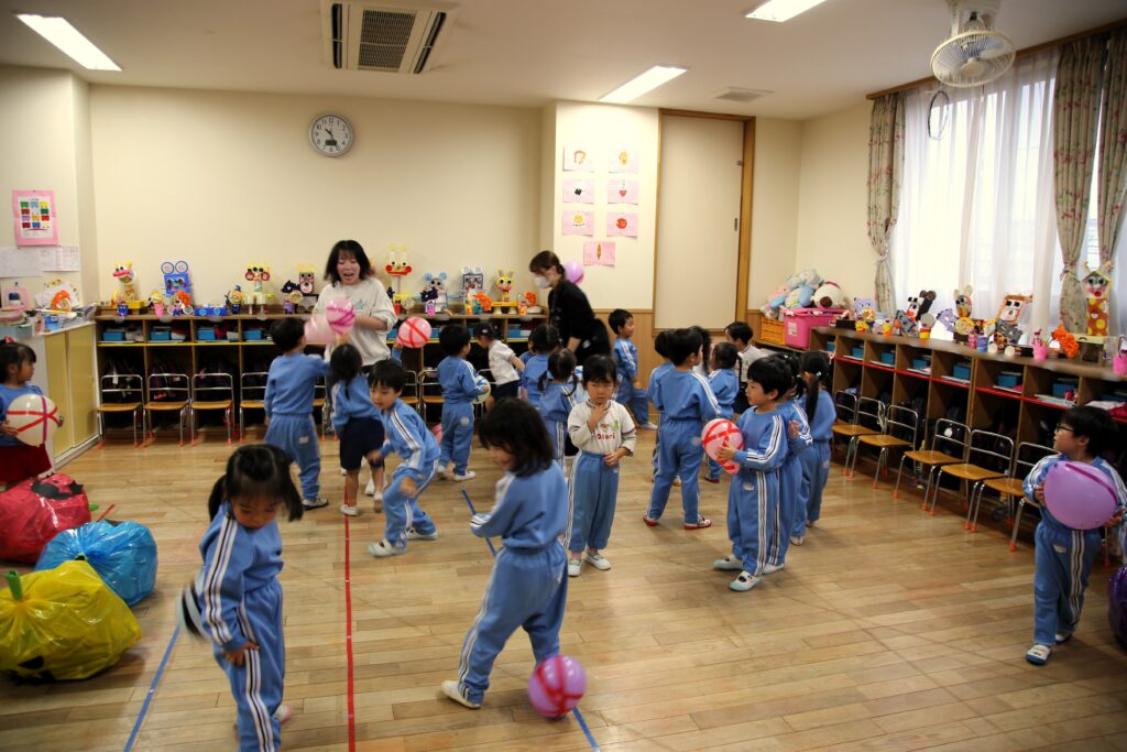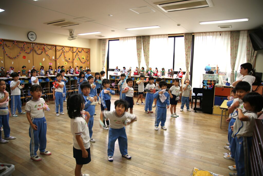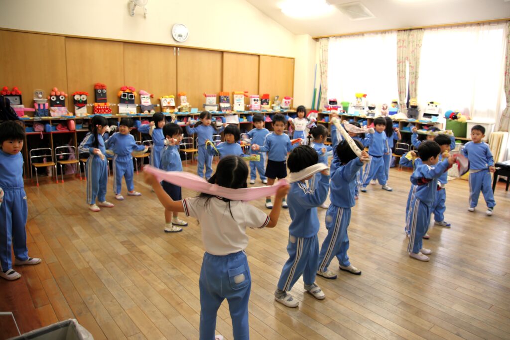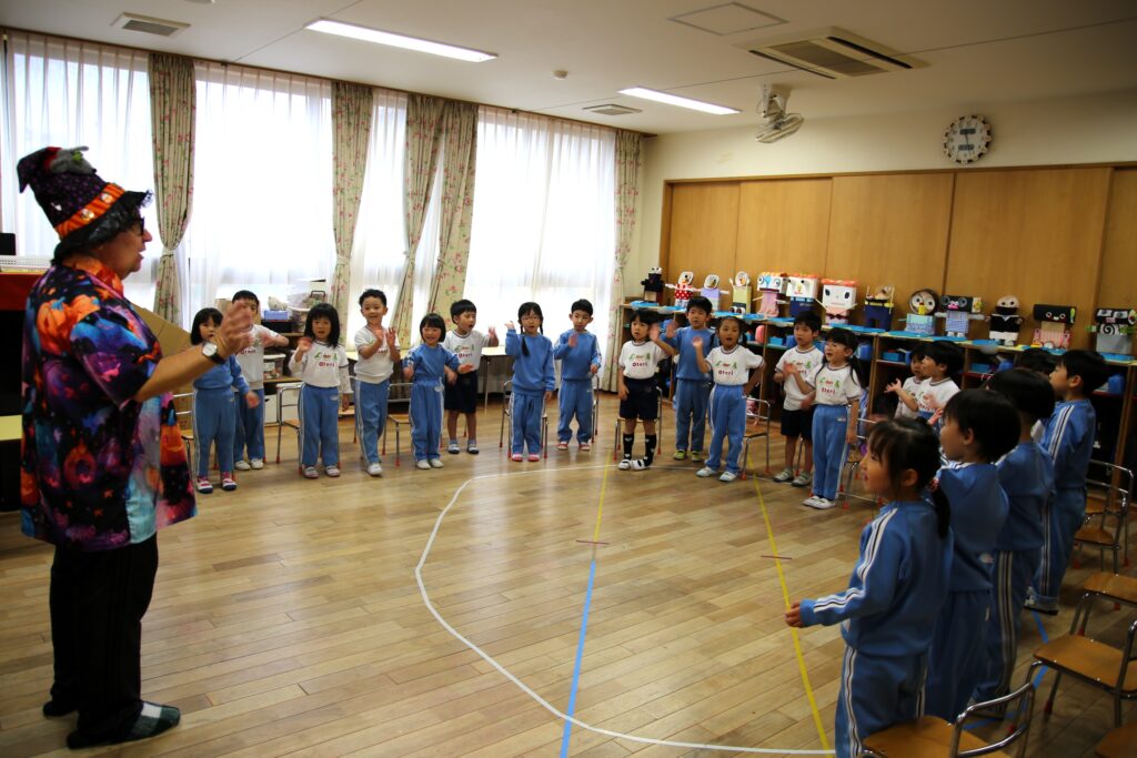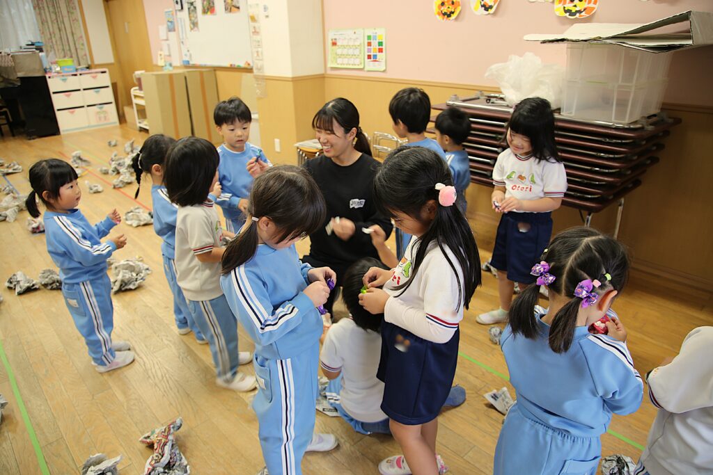 楽しいゲームで大盛り上がり、先生やお友だちと一緒に楽しく遊びました。