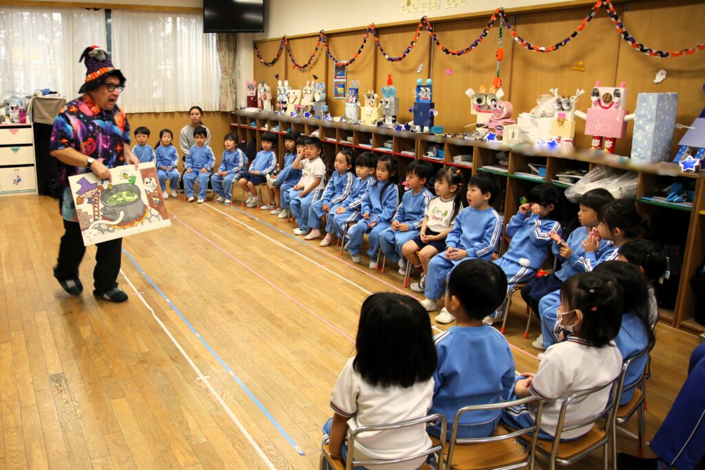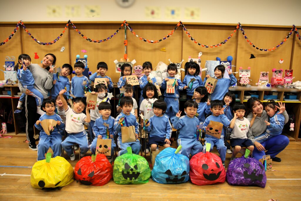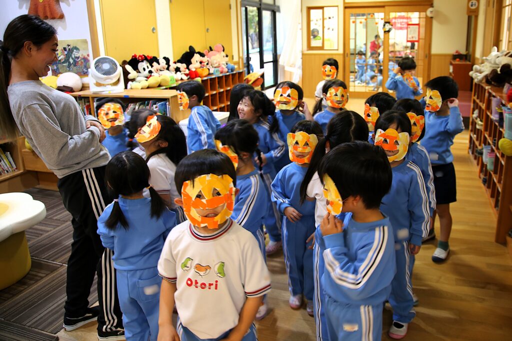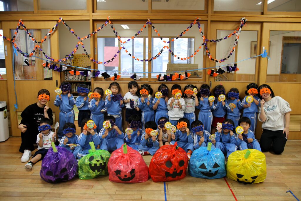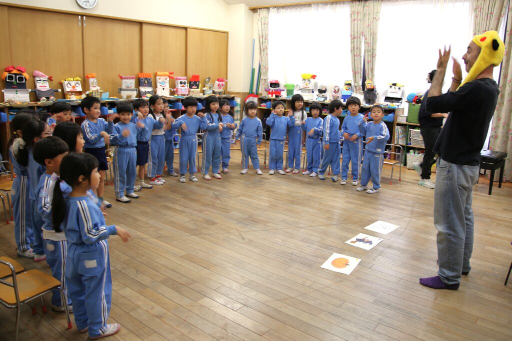 楽しいゲームで大盛り上がり、先生やお友だちと一緒に楽しく遊びました。