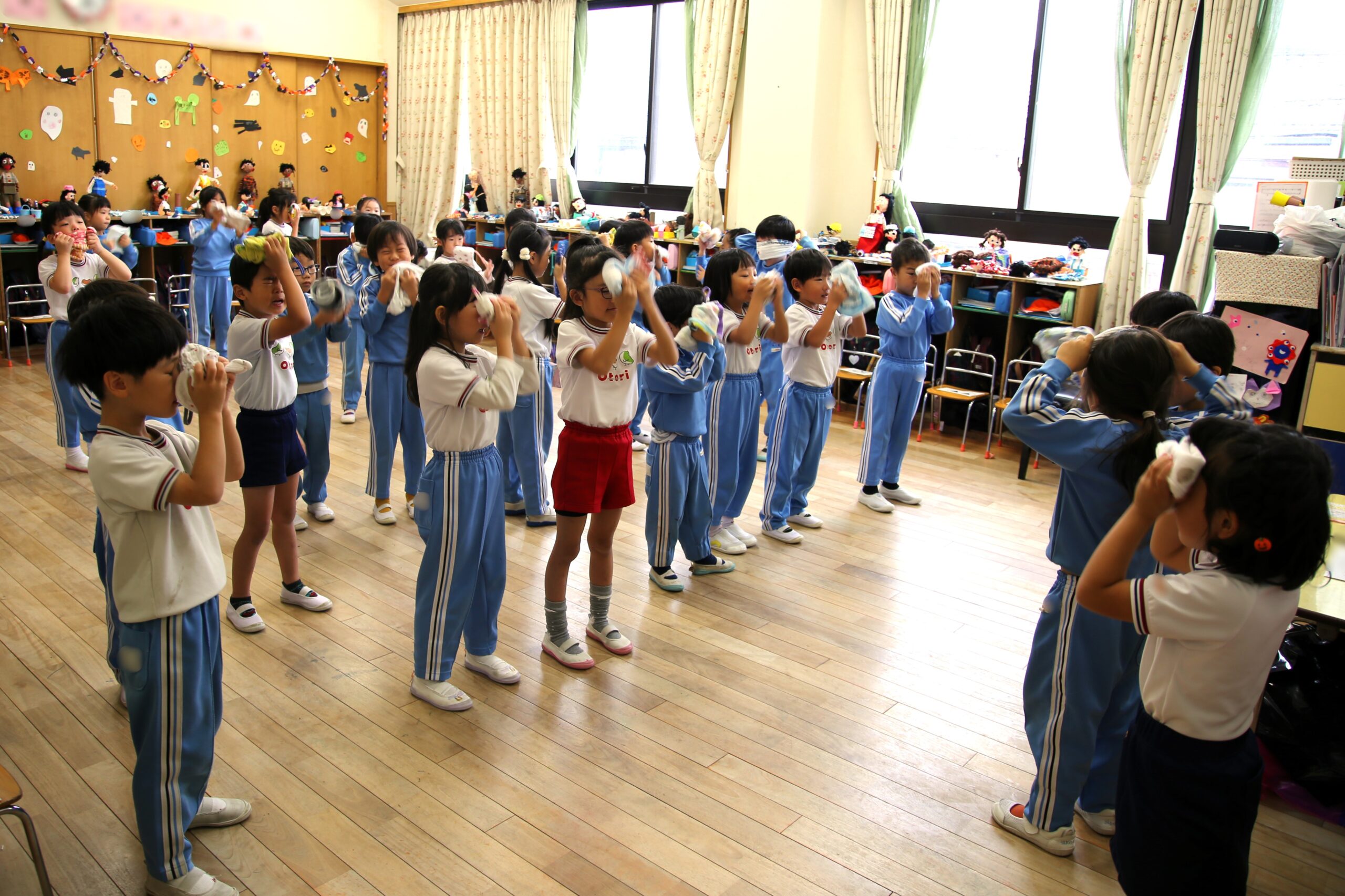 きりん組のお友だちの号令で元気に乾布摩擦をしました。